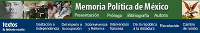 Memoria Política de México. TEXTOS la historia escrita, 1492-2000 Autora: Mtra. Doralicia Carmona Dávila Sitio externo a la Cámara de Diputados, reproducido con fines de divulgación de leyes y documentos históricos