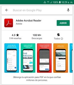 Instale en su dispositivo móvil la aplicación Adobe Acrobat Reader para Android.