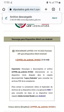 Descargue directamente en su dispositivo móvil el archivo LEYFED_zip_android_091025. Archivo de descarga de 159 MB.